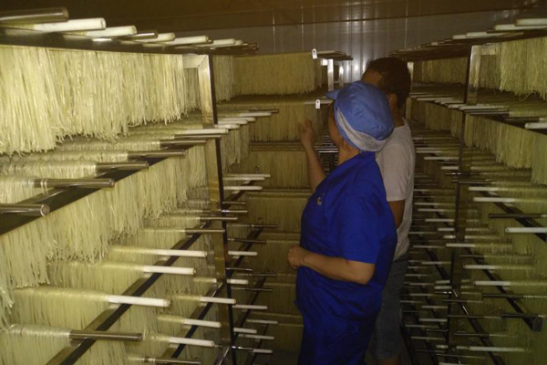 同益空氣能熱泵烘干米粉,采用搭建烘干房的形式來烘烤。利用空氣能熱泵制造熱風(fēng),熱風(fēng)吹入烘干房內(nèi)來達(dá)到烘干的目的。空氣能熱泵本身制熱不受天氣限制,有空氣、有電能就能制熱,一年365天都可以有效實(shí)現(xiàn)烘干。而且由于米粉放置在烘干房內(nèi),與外界形成隔離,污染物都被阻擋在烘干房內(nèi),烘干的成品純凈度非常高。自從廣西家柳食品科技有限公司選用了同益空氣能熱泵烘干機(jī)來烘干米粉,機(jī)組智能控制烘干溫濕度,實(shí)現(xiàn)了快速穩(wěn)定的烘干,米粉干爽白凈。相比以前不僅運(yùn)行費(fèi)用降低了,而且烘干出來的米粉品相非常好,產(chǎn)品在全國各大超市暢銷,用戶感到十分滿意!