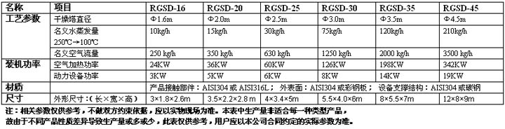 RGSD系列離心造粒噴霧干燥機技術參數表: